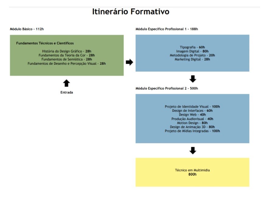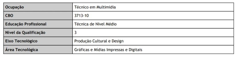Habilitação Profissional em Multimidia, com competências para "coordenar e executar projetos para mídias digitais,